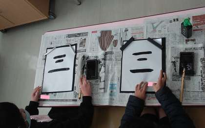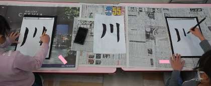 水筆で練習をした後、先生と一緒に墨と筆を使って自分で選んだ1文字を書きました。緊張したようで、終わるとホッと一息つく子もいました。