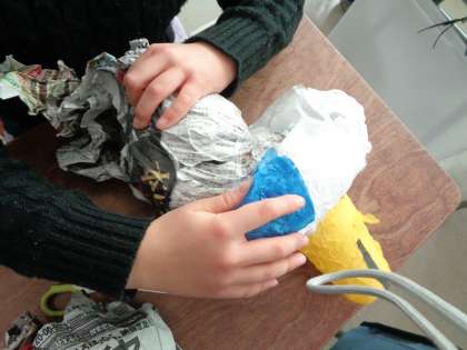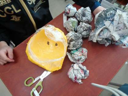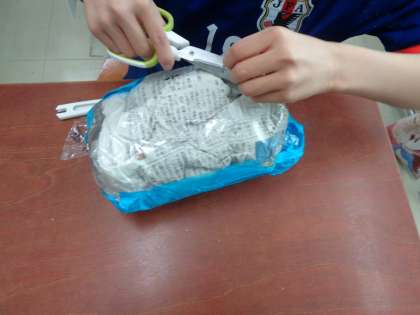 図工「かぶってへんしん」の学習では、お面を型から外す活動をしました。