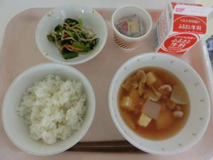 今日は納豆が給食に登場しました。メインのおかずは納豆ですが、豚汁にも具をたくさん入れて、おかずのようなボリュームを出しました。千歳台小の子どもたちは納豆を家でよく食べている子が多いようで、喜んでいる子がたくさんいました。子どもたちは「何回混ぜようかな〜」「ごはんにかけないでそのまま食べちゃおう」とそれぞれおいしい食べ方を考えていました。