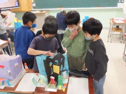 鑑賞の時間には、友達に工夫したところを紹介したり、友達の素敵なところを探したりしました。