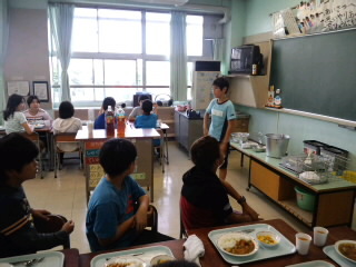 都内・区内めぐりが終わり、班ごとに教室に分かれて給食(夕食)を食べました。カレー&サラダ&雪見だいふくを美味しくいただきました。