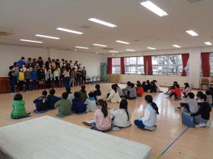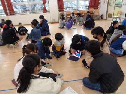 5年生各クラスが6年生の兄弟クラスから教えてもらう時間を作っています。