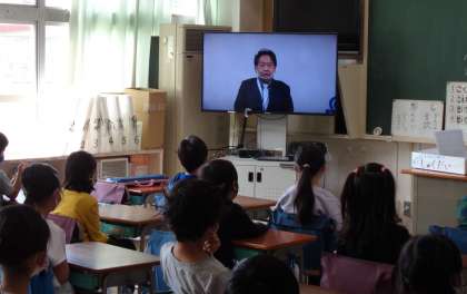 子どもたちは、校長先生の話を画面を通してしっかり聞いています。