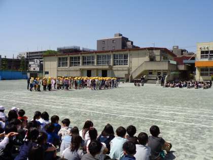 最後は、全員が校庭に出て、1年生のかわいい歌声を聞きました。