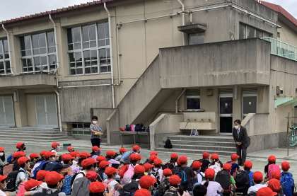 「安全に」、「れいぎ正しく」、「しっかり学ぶ」のめあてを確認し、出発しました。