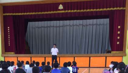 副校長先生からお話をいただいた後、今年のめあてを発表し、入水の仕方や笛の合図、持ち物の確認等を行いました。