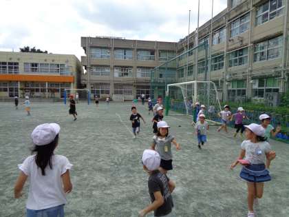 夏の太陽の下で予想以上に暑くなり、短い時間の遊びになりましたが、1年生の子どもたちにとっては十分すぎる遊びでした。