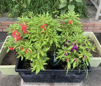 ホウセンカも、各クラス、様々な色で咲き始めています。