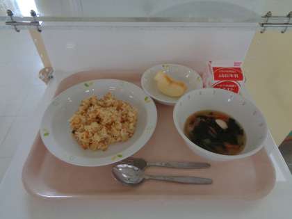 今日は、ショウガでパンチをきかせたそぼろご飯でした。調理中の給食室から食欲をそそる香りがして、中休みから給食が待ち遠しくてたまりませんでした。