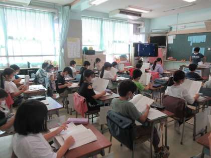 登場人物や場面の様子を思い浮かべ、声を出しながら、しっかりと音読しています。