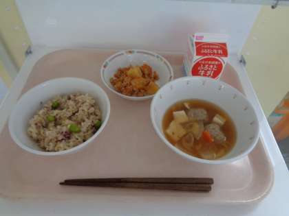 萩ごはんは、秋の花の「萩」に見立てた小豆(あずき)を炊き込んだごはんです。