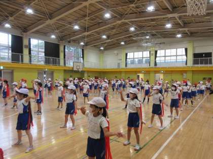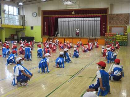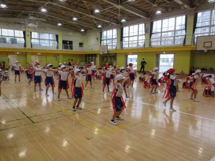 ひときわ目を引いたのが、背中に付けている青と赤のリボンのようなものです。