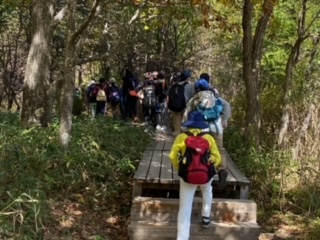 ハイキングコースの大半は木立の中です。時折り、大きく開けるところがあり、湿原が広がっています。
