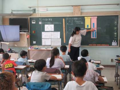 2年生で学習したかけ算九九は、三年生になると筆算の学習をしたり、文章もんだに取り組んだりすることで、力を確かなものにしていきます。