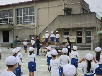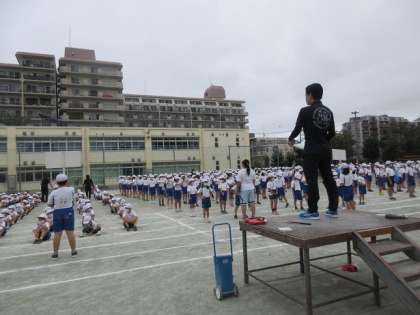 650人に子ども達が並ぶと壮観です。1年生も上手にできていました。