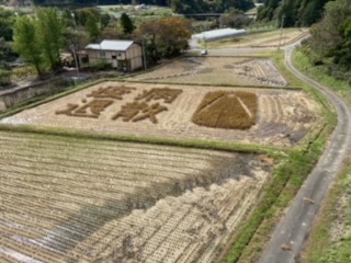 およそ2時間半ほどで、昨日立ち寄った資料館前の広場に到着しました。近くの吊り橋からは田んぼアートを見る事もできました。