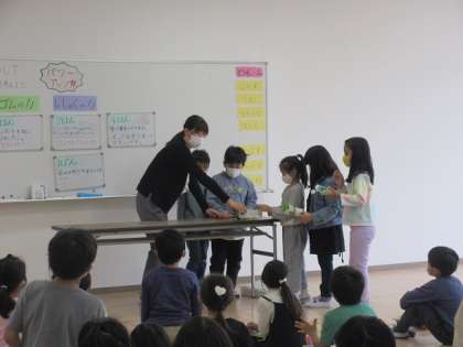 今日は校内の先生たちが集まり、2年1組で生活科の研究授業を行いました。