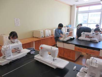 展覧会に向けての作品作りで、ミシンを使っていました。