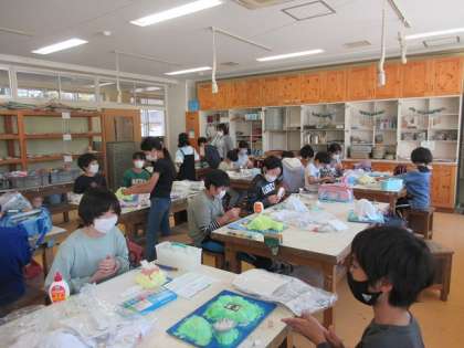 展覧会作品の制作中で、自分で考えた島を作っているようです。