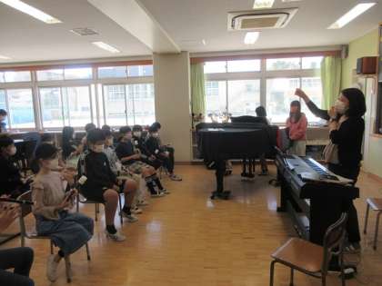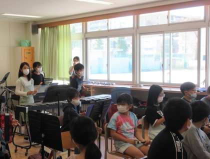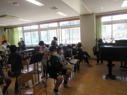 合奏の練習中でした。パートごとに、音を合わせながらの練習です。