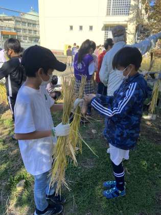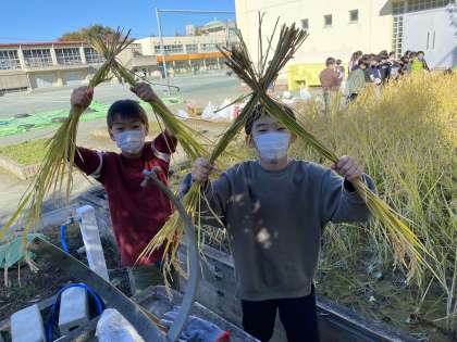先日の雨で少し心配でしたが無事晴天の中稲刈りが行えました。