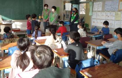 今朝は、いつも登下校の安全を見守っていただいている安全ボランティアの皆さんに感謝の気持ちを伝える会をしました。