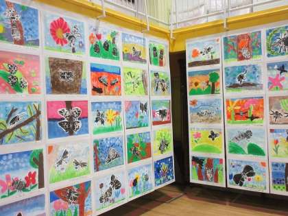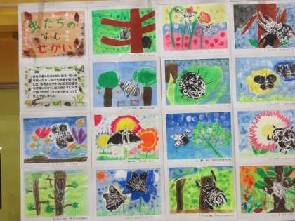 その中にいる、虫たちは、版画でできています。今にも、動き出しそうです。
