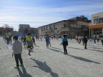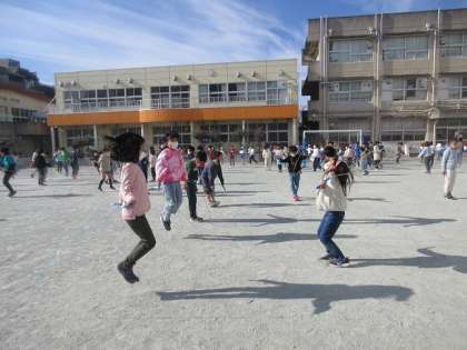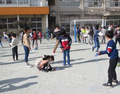 休み時間とともに校庭は縄跳びをする子ども達いっぱいになりました。