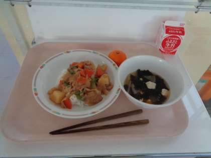 今日のメニューは、肉じゃが丼でした。