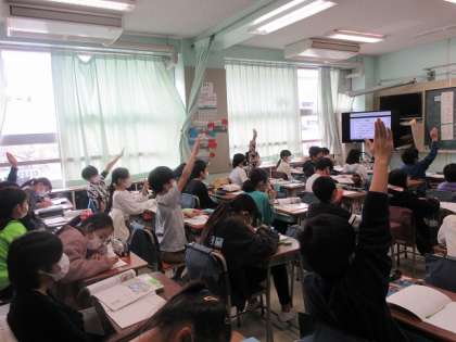 報道系のテレビ番組から、わかることを考えています。よく手が上がり、元気いっぱいの学習時間です。