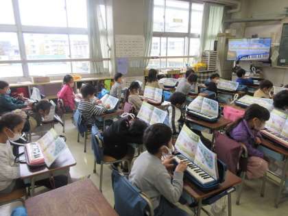1年生の音楽の鍵盤ハーモニカの演奏です。