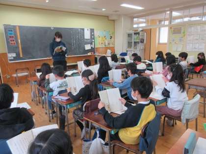 国語で教科書を音読します。一人ずつ、読点ごとに読みます。