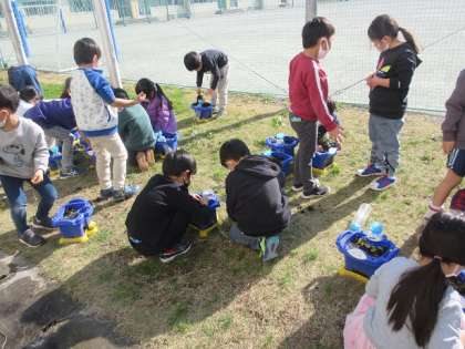 「何を植えるの?」と聞くと、大きな球根を見せてくれ「チューリップ」と元気よく答えてくれました。