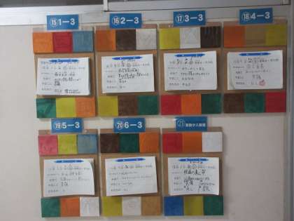 主事室前の掲示版にあるのが、縦割り班の計画用紙です。