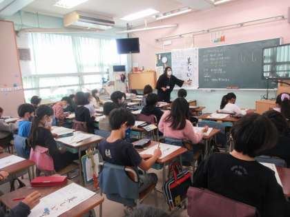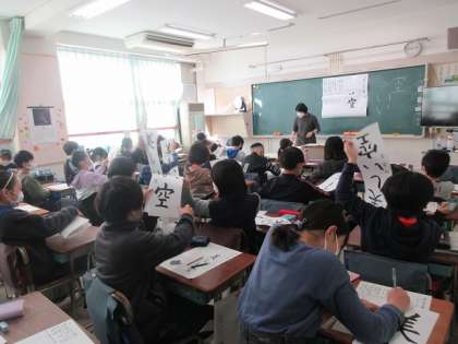 間もなく新年を迎えますが、4年生は書初めの文字について学習していました。