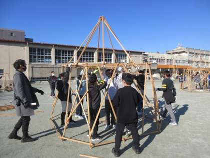 屋根が上がり始めると、建物感が一層増します。高さを出すグループもあります。