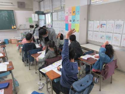 男の子が近くにやってきて「校長先生の字?」「そう、てら村の村だよ!」