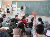 3年2組の理科の学習です。3年生では、学習キットを使いながら、ゴムの力について学習しています。身近なものなので、いろいろな考え方が出てきます。