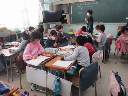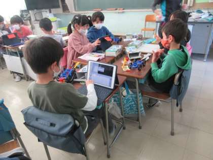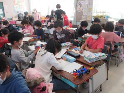 3年2組の理科の学習です。3年生では、学習キットを使いながら、ゴムの力について学習しています。身近なものなので、いろいろな考え方が出てきます。