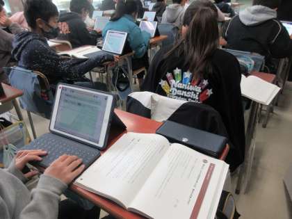 教室内に聞こえる、キーボードをたたく音もリズミカルになってきています。