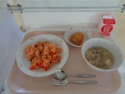 給食が終わった後に栄養士の所先生に「フライドチキンを出してくれてありがとう」と感謝している子どもがいました。感動的なシーンでした。