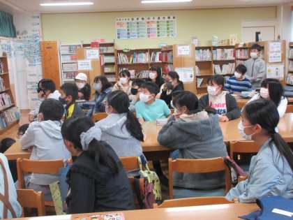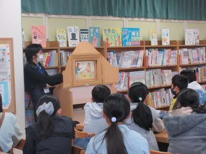 図書室を除くと、司書さんが紙芝居をしていました。