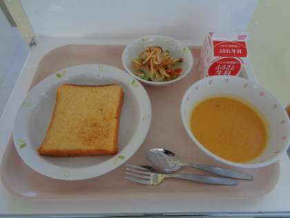 私の記憶が正しければ、にんじんのポタージュが給食で登場するのは初めてかもしれません。