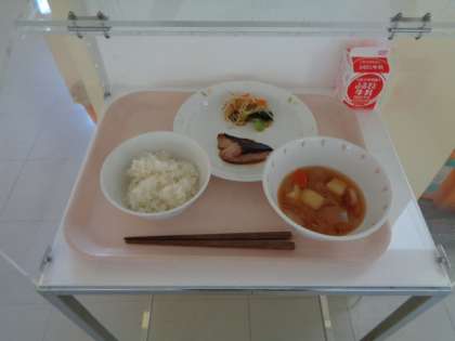 今日は、玉ねぎの味噌汁です。給食に玉ねぎの味噌汁が出るのは初めてかもしれません。