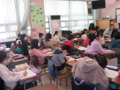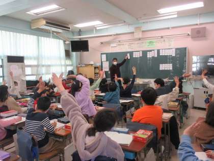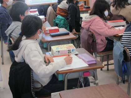 机の上には国語辞典が用意されており、調べ学習と合わせて進めているようです。