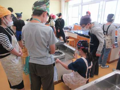 ガスコンロに火を入れるところからでしたが、おっかなびっくりの様子。