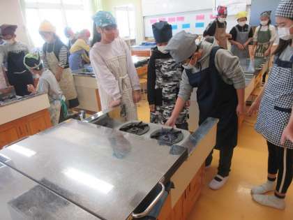 5年2組は家庭科室で調理実習として、お茶を淹れる学習をしました。