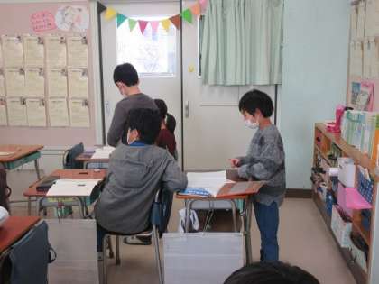 そのあと、近くの友だちと意見交換をしながら、理解を深めています。
