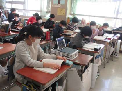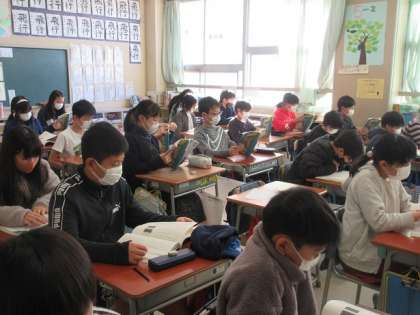 5年2組の国語の学習で、教科書の音読の時間でした。