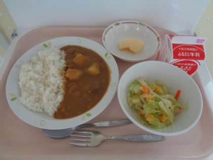 今日のポークカレーライスは、豚肉が角切りになって入っていて食べごたえがありました。